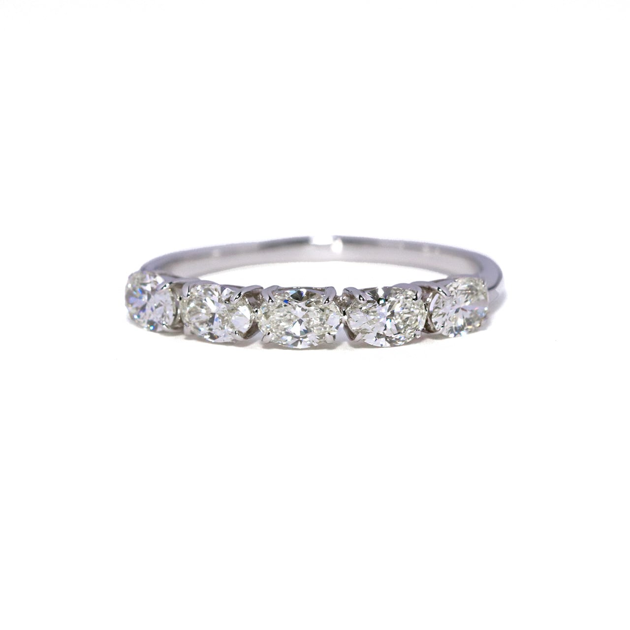 優美な曲線を描くオーバルカットダイヤモンドを贅沢に並べたハーフエタニティリング。