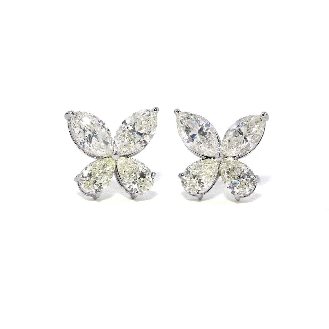 軽やかに舞う、光の蝶々。 マーキスカットのダイヤモンドを組み合わせたバタフライモチーフは、繊細さと立体感を兼ね備えた美しいデザインです。 蝶は古くから「変化」や「再生」、そして“新たな世界へ羽ばたく象徴”とされてきました。 身につける人の背中をそっと押し、次のステージへと導く存在。 光を受けるたびに、ダイヤモンドの透明感あふれる輝きが広がり、顔まわりに凛とした華やぎを添えます。 可憐でありながら、芯のある美しさを。 未来へと羽ばたくための、小さな象徴です。